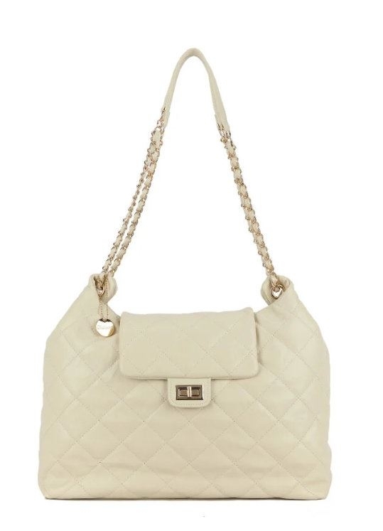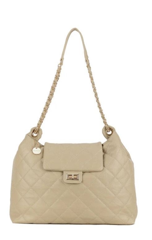 Grote kunstlederen schoudertas. De band heeft een combinatie van kunstleer en een goudkleurige ketting