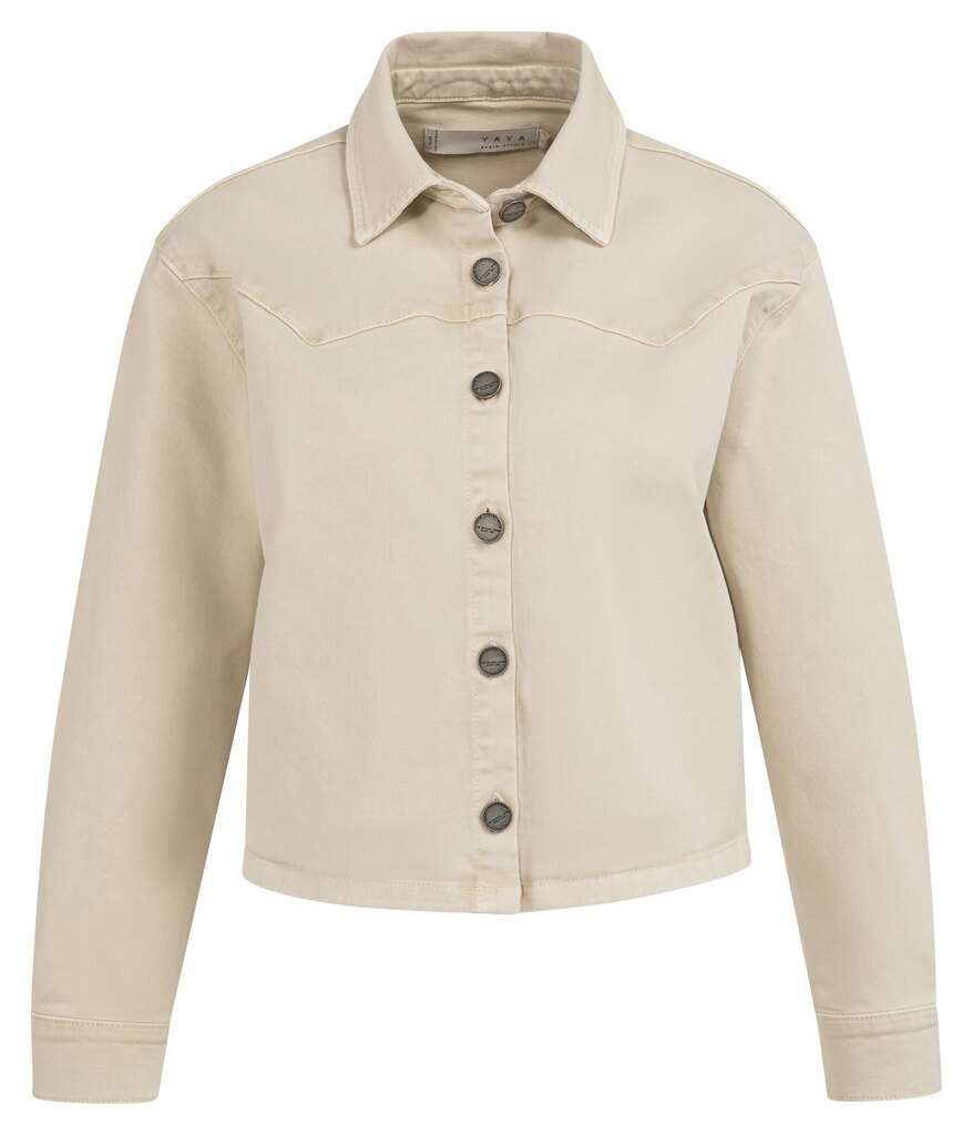 Dit gekleurde korte denim jasje is gemaakt van stevig katoen. Het model heeft een klassieke kraag, een losse pasvorm, lange mouwen en een knoopsluiting. De siernaden op de borst geven een verfijnde en moderne touch aan het ontwerp.