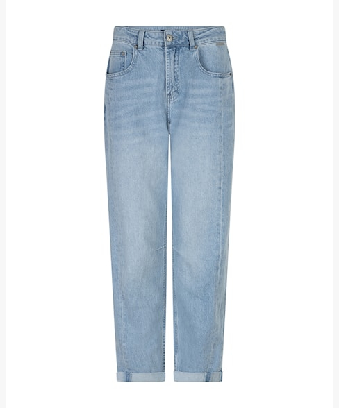 De lichtblauwe wassing zorgt voor een frisse en casual uitstraling die perfect past bij het voorjaar en de zomer. De naden langs de zijkant geven de jeans een subtiel detail en versterken het silhouet. De omgeslagen zoom zorgt voor een speelse afwerking en laat de broek net iets nonchalanter ogen.
