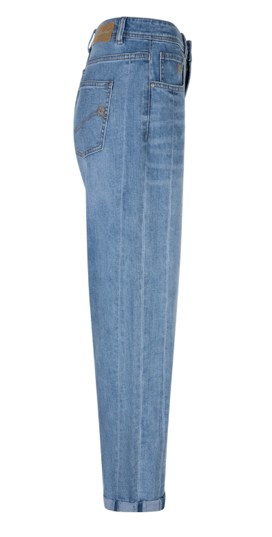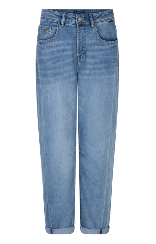 De mid stone wassing geeft de jeans een frisse, tijdloze denimkleur die makkelijk te combineren is met verschillende stijlen. De naden langs de zijkant zorgen voor een subtiel detail en geven de broek net iets extra karakter. De omgeslagen zoom zorgt voor een speelse, casual afwerking.