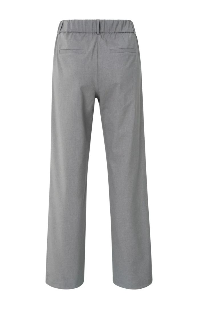 Deze geweven broek is ontworpen met een comfortabele elastische tailleband en wijde pijpen voor een losse pasvorm. De stijlvolle ceintuur voegt een moderne touch toe aan het ontwerp. De broek is afgewerkt met steekzakken aan de voorkant en paspelzakken aan de achterkant. Perfect voor een casual-chique look. Het model is 174 cm en draagt maat 36.