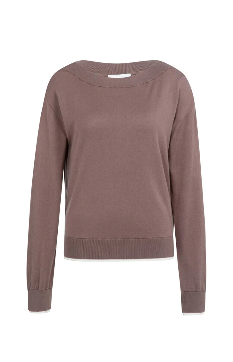 Deze fijngebreide trui is ontworpen met een elegante boothals en lange mouwen met subtiele plooitjes bij de manchetten. De contrasterende afwerking aan zoom en mouwboorden geeft een verfijnde twist. Dankzij de normale pasvorm is dit item zowel stijlvol als comfortabel.