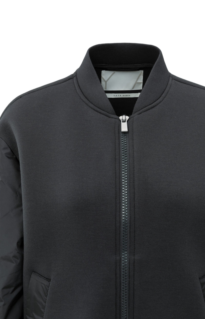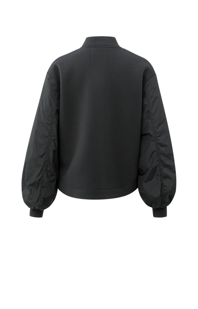 Dit stoere bomberjack is gemaakt van een comfortabele fleece stof en is afgewerkt met glanzende nylon mouwen. Het jack heeft een ritssluiting, een losse pasvorm, een opstaande kraag en elastische boorden. De pofmouwen zorgen voor een eigentijdse touch. Een perfect item om warmte en stijl te combineren op koelere dagen.