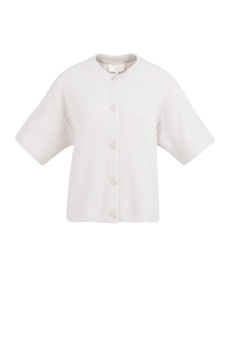 Dit comfortabele vest is vervaardigd uit een zachte ribgebreide stof en heeft een losse pasvorm. Het model is ontworpen met wijde korte mouwen, een ronde halslijn en een knoopsluiting aan de voorzijde. De minimalistische look maakt dit item perfect om gelaagd te dragen over een top of blouse.