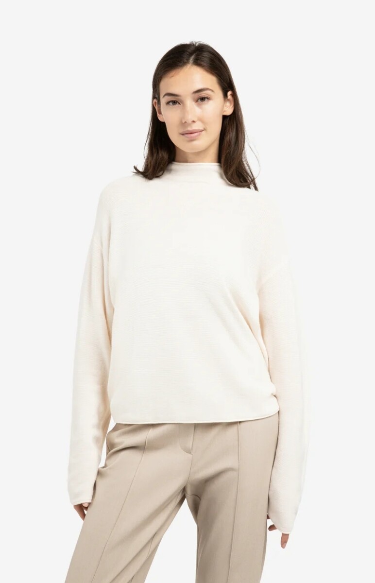 Deze trui is gemaakt van een zachte, gestructureerde brei en heeft een normale pasvorm. Het model is voorzien van een opstaande hals, lange mouwen en een elegante knoopsluiting op de rug. De rijke textuur en verfijnde afwerking maken dit een stijlvol item voor een vrouwelijke, casual look.
