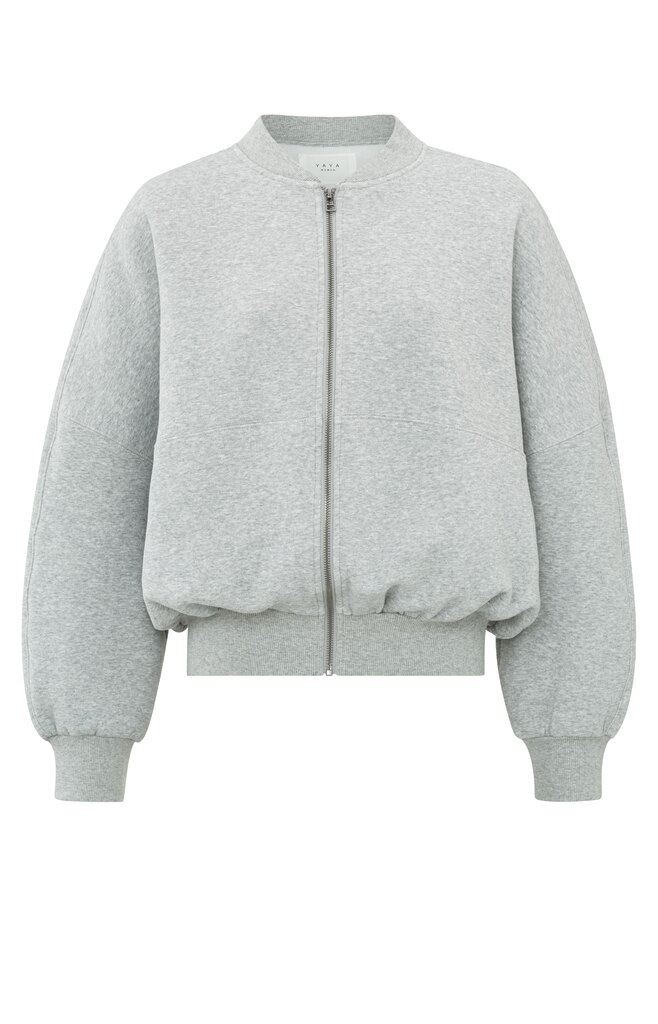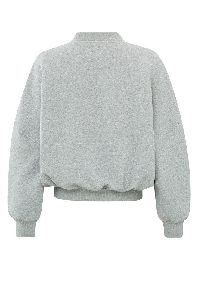 Deze comfortabele lichtgrijze bomberjack heeft lange mouwen, zakken, ritssluiting, ruime pasvorm en elastische boorden en taille. Deze tijdloze bomberjacket is eindeloos te combineren met al je favorieten items. Het model is 175cm en draagt een maat 1.