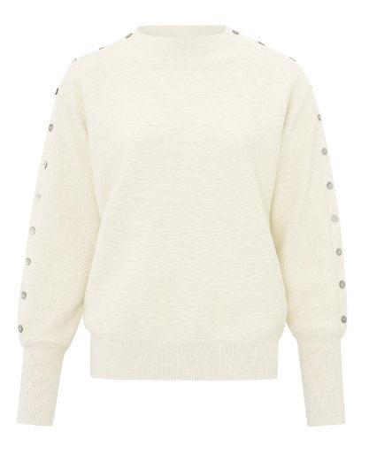 Een katoenen trui met een comfortabele pasvorm, lange mouwen en een elegante boothals. De knoopdetails op de mouwen voegen een vleugje verfijning toe aan dit tijdloze stuk.