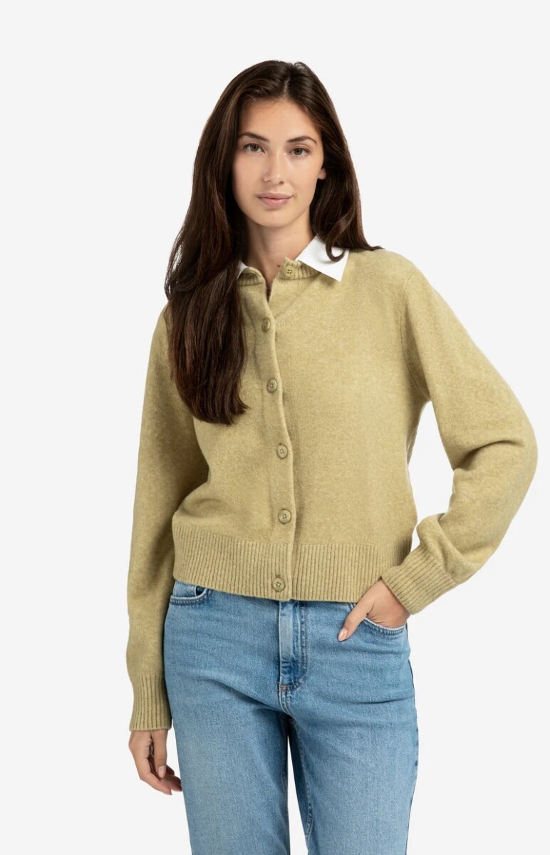Dit elegante vest is vervaardigd uit een zachte gebreide stof en voorzien van een klassieke knoopsluiting. De afneembare, witte kraag van geweven katoen zorgt voor een stijlvolle, gelaagde look. Het vest heeft lange mouwen, een normale pasvorm en ribdetails aan de boorden. Ideaal om zowel casual als gekleed te combineren.